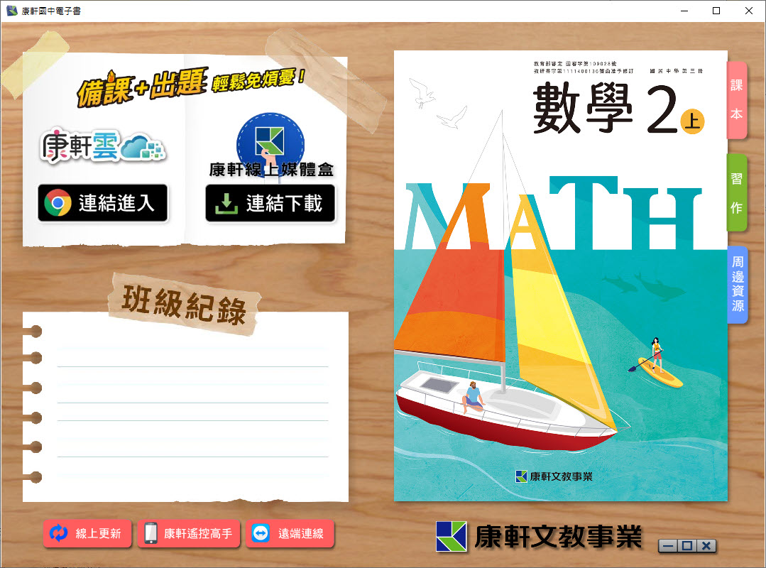112學年上學期 國中 康軒版 數學電子書 2年級(含課本、習作含解答、教學資源)教學光碟